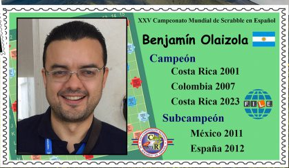 (Caracas, 1979) es el jugador de Scrabble ® más joven (22 años) en haber ganado un campeonato mundial (Costa Rica, 2001). Obtuvo su segundo campeonato seis años más tarde (Colombia, 2007) y se consagró como Tricampeón en el Campeonato Mundial de 2023 (Costa Rica, 2023). Cuatro veces subcampeón mundial (México 2011, España 2012, España 2024 y Santiago de Chile 2025), Benjamín se ha mantenido en el top 5 del ranking Elo internacional durante la última década y lo lidera actualmente.